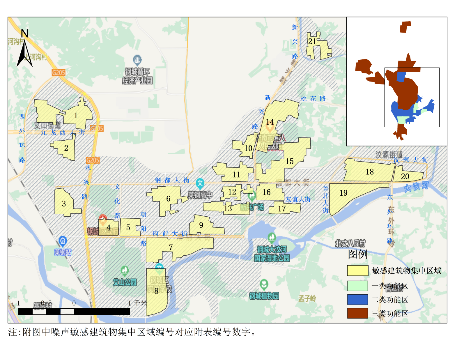 鋼城區(qū)噪聲敏感建筑物集中區(qū)域分布圖