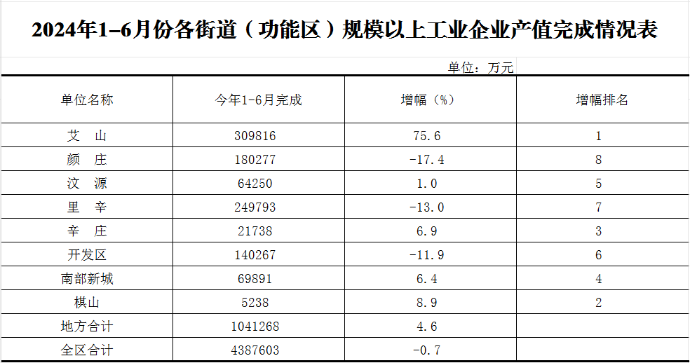 2024年6月份全區(qū)規(guī)上工業(yè)產(chǎn)值完成情況