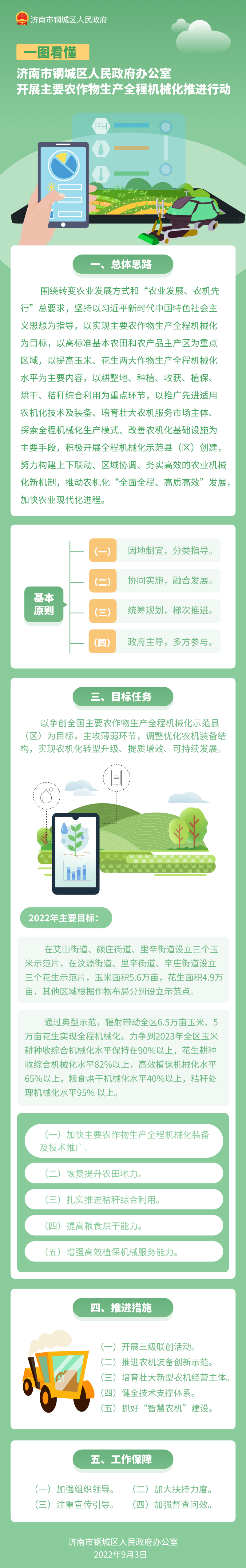 一圖看懂:《濟南市鋼城區(qū)人民政府辦公室關于開展主要農(nóng)作物生產(chǎn)全程機械化推進行動的實施意見》